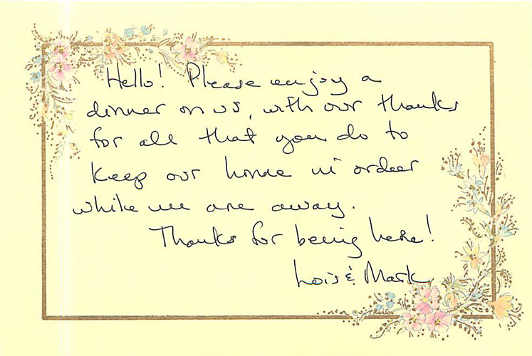 Over the years, we have been grateful to work with so many wonderful homeowners who show their appreciation in many ways.  Below are some of the notes of thanks we’ve received.